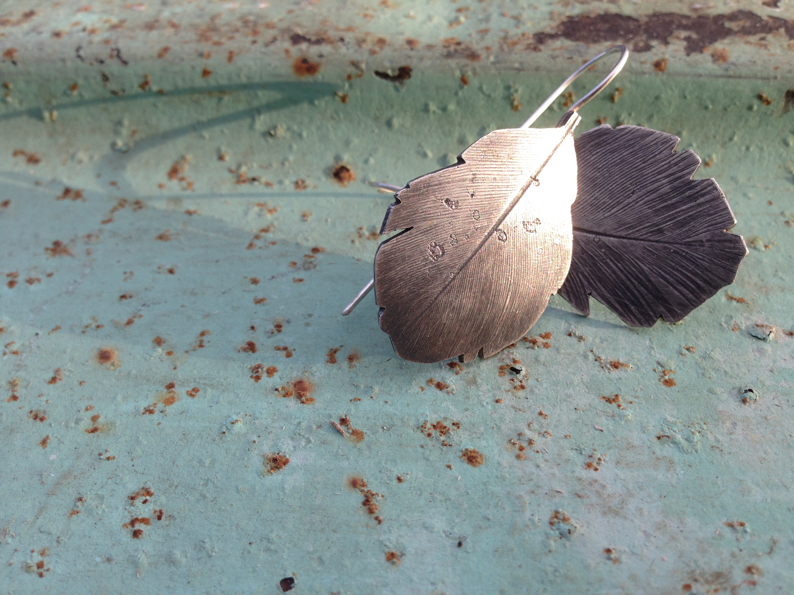 • Hi Bev, thank you for your comment. The earrings are actually feathers, but look very similar to leaves! They are £55 and I hand-make each earring imprinted with a real feather so each is slightly different. I can however make them as similar to the ones you have seen as possible. Please email me on chloeo_brien@hotmail.com if you would like to discuss. Many thanks, Chloe.